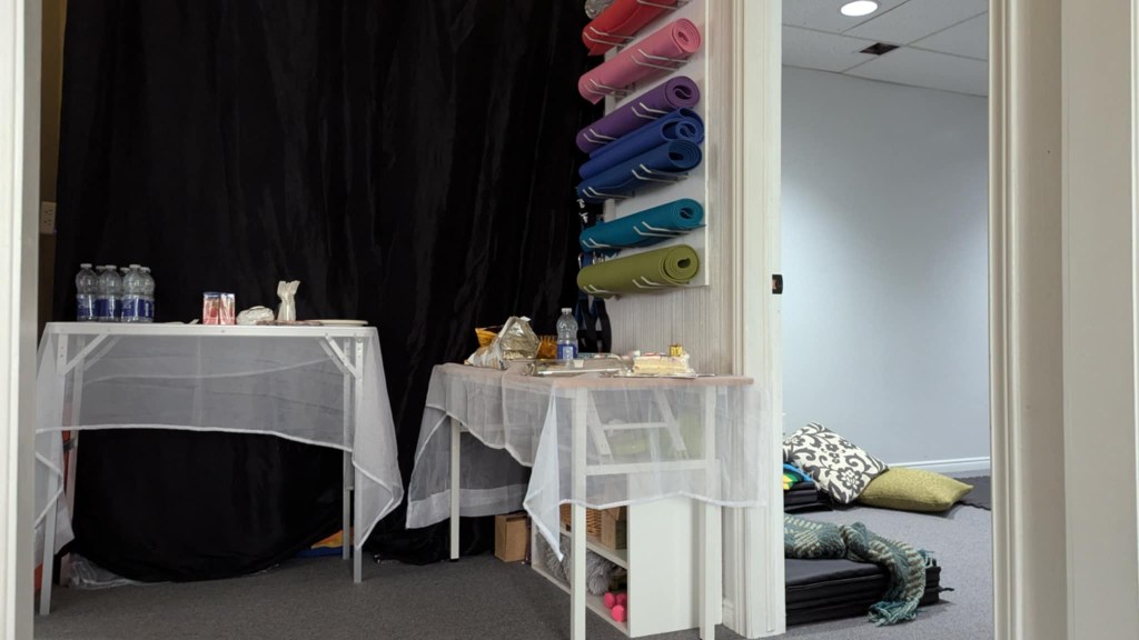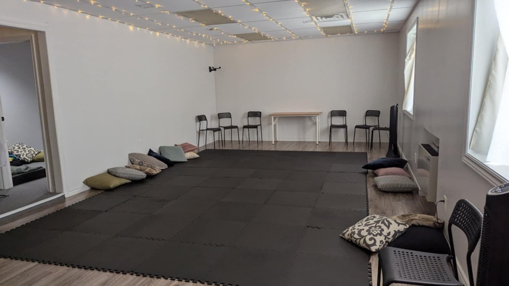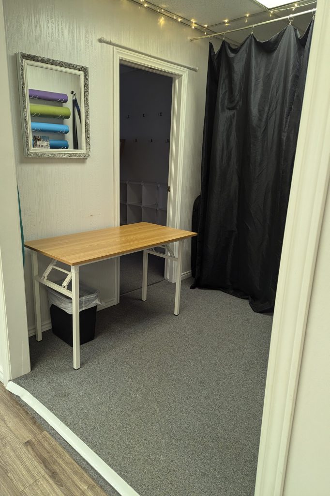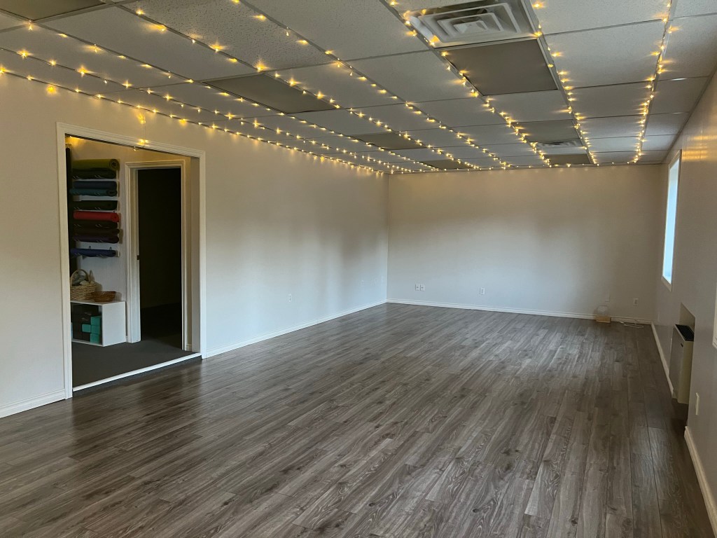 Step inside The Space and you’ll be welcomed by a cozy foyer and lower level washroom. Upstairs, the open studio space is bright and fresh ready for you to come and jump right into your work with clients. The Space offers hourly rentals for classes, photo studio sessions, workshops, events, massage, and more. Take a peek below at what we have to offer… and contact Alexis to pop over in person!